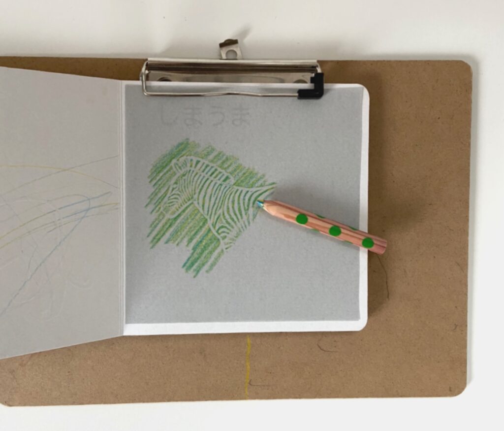 こどもの様子を見ていると、塗ることに夢中になって紙を押さえるところまで気が回らないようでした。少しでも紙がずれてしまうと、絵もずれてしまいキレイに塗ることができないので紙とボードを一緒にしっかり押さえる必要がありました。